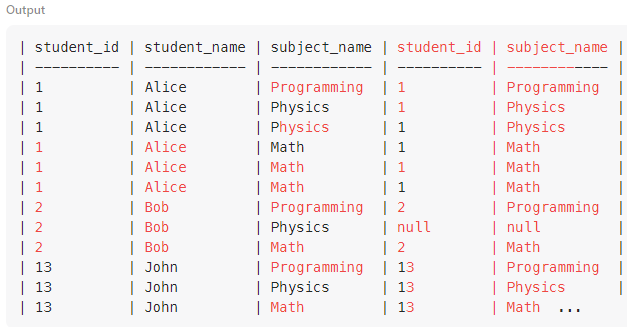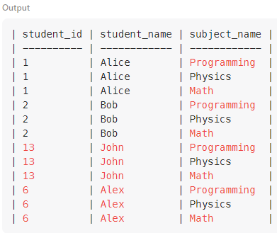 1) CROSS JOIN을 통해 Students와 Subjects 테이블 JOIN